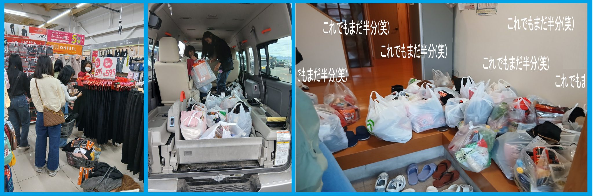 急に朝夕が冷え込んで来たため、温かい衣類がメインでの買い物です。また、重くて普段バスでは買えないような お米等も購入しました。