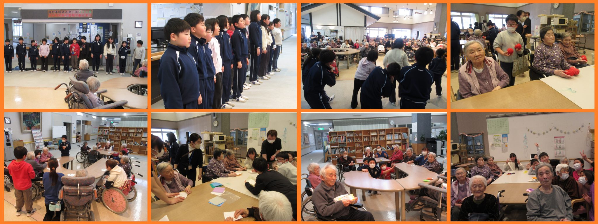 さわうち小学校のふれあい交流会が行われ、小学4年生(12名)の来園がありました。4年生の皆さんは総合学習で『高齢者や障がい』について授業で学んできました。本日は その学びを活かして、生徒が考えた遊びで交流を行いました。
