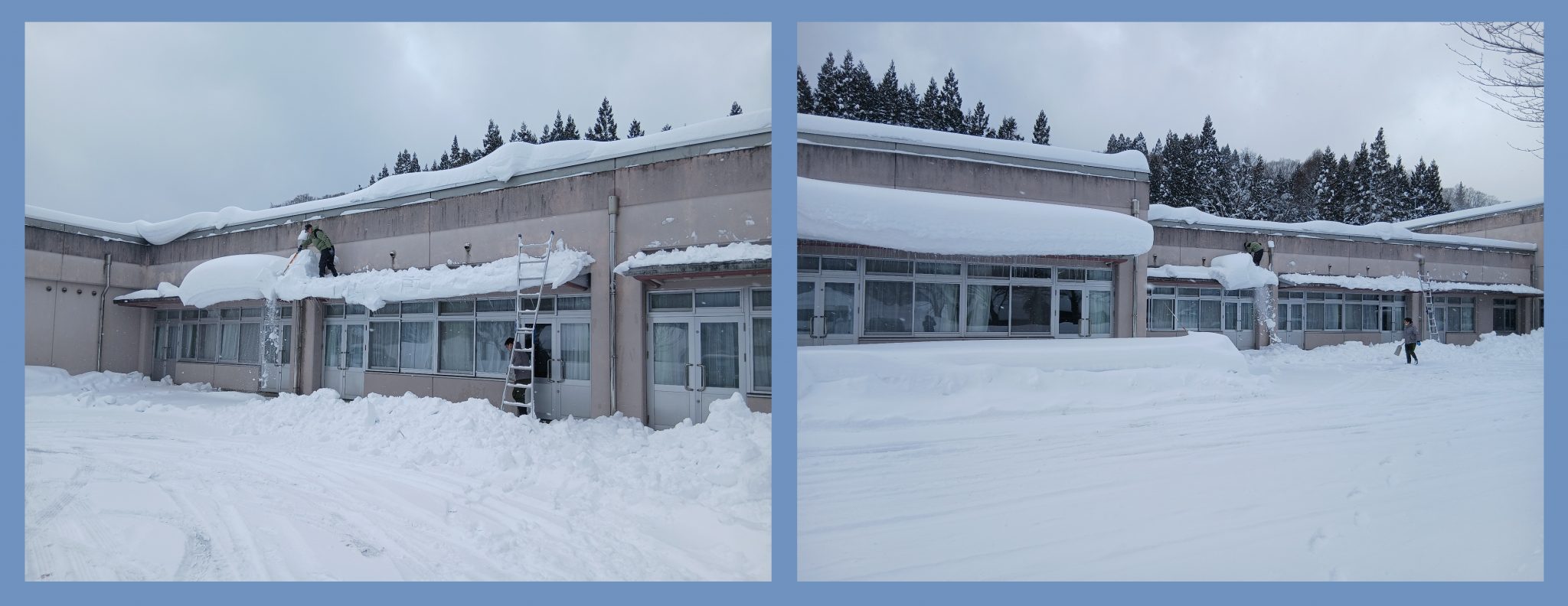 この数日で軒に雪が溜まってしまい、今日は有志で雪落とし作業。