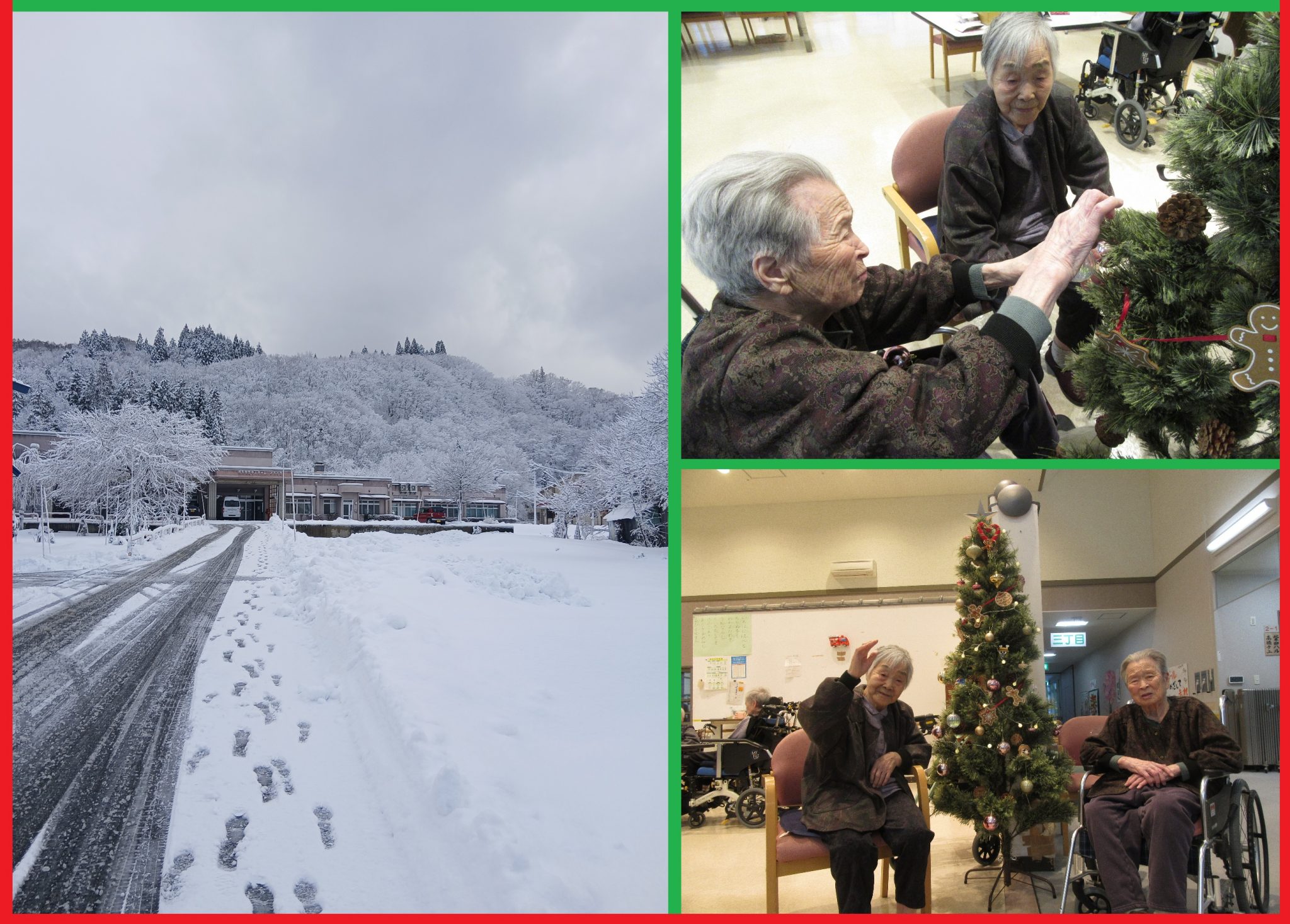 施設内がクリスマスに向けてキラキラしています。今日は今年新たに新調したクリスマスツリーのお披露目式(笑)180cmもあるツリーです。利用者の皆さんもお手伝いをしてくれて、食堂が一気にクリスマスモードになっています。